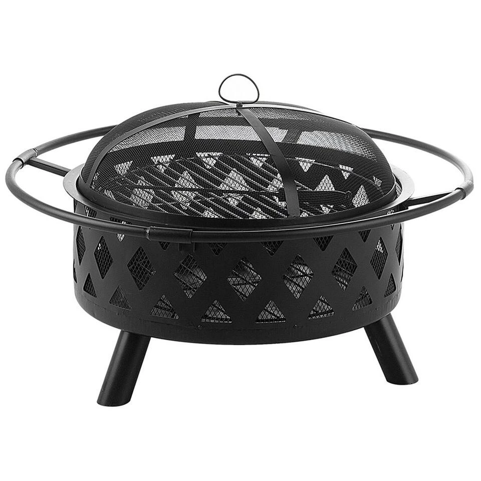 Ronde, zwarte firepit van staal. Geniet van de rustgevende warmte terwijl je een tuinfeest viert! De haard gemaakt van hoogwaardig staal maakt indruk met zijn vakmanschap en het buitengewone ontwerp. Dankzij het extra rooster wordt de omgeving beschermd tegen vonken. De set bevat alle benodigde elementen en accessoires.