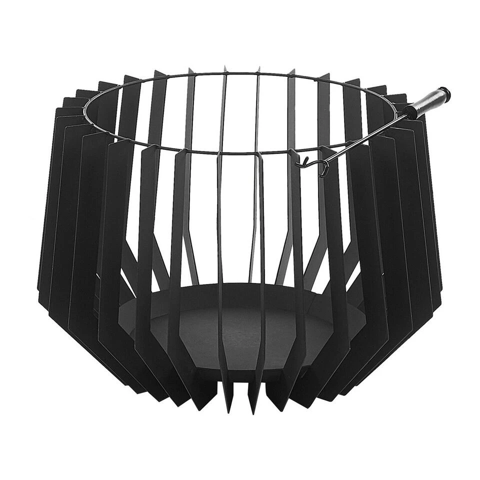 Moderne, ronde firepit van staal in zwart. Deze rustieke firepit is snel op te zetten en is een uitstekend alternatief voor een terrasverwarmer. Dankzij de open, stalen constructie zorgt het voor een romantisch kampvuurgevoel in je tuin. Hiermee kun je genieten van rustgevende warmte op koude winter- en herfstdagen en koele zomeravonden.
