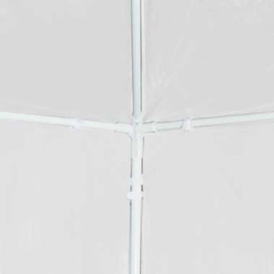 Het tuinpaviljoen is gemaakt van uv- en waterbestendig polyethyleen materiaal en is daarom zeer geschikt voor buitengebruik. Het frame is gemaakt van roestbestendig staal, waardoor het paviljoen stabiel en duurzaam is. De feesttent heeft zijpanelen, elk met decoratieve ramen, en 1 deurpaneel met rits voor eenvoudige toegang. De tent is eenvoudig te monteren.